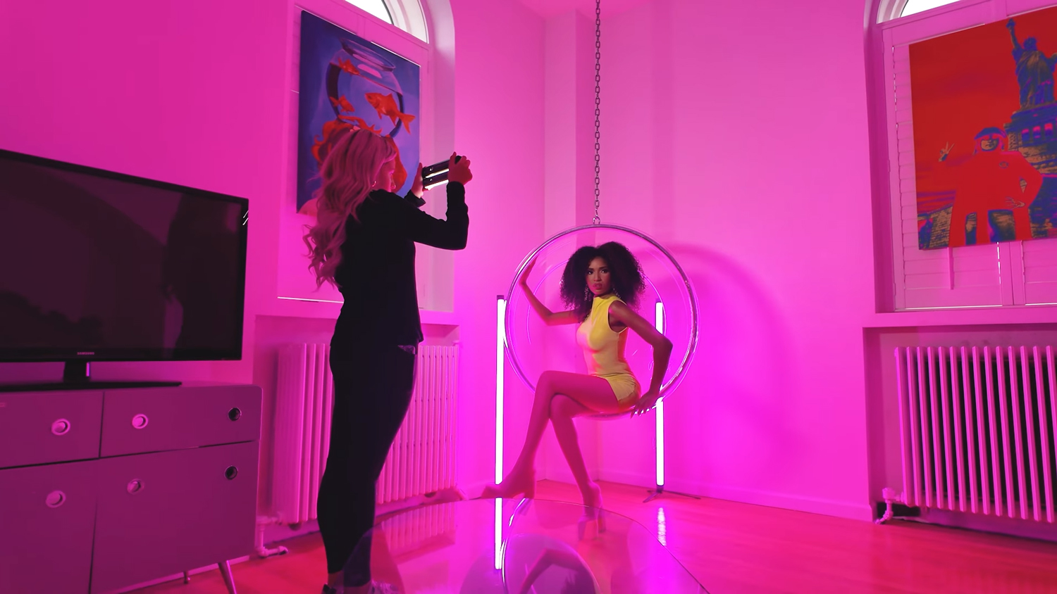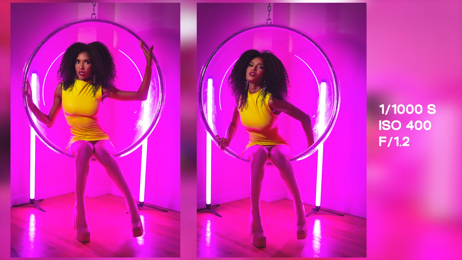 The setup was intentionally minimal. Two larger tube lights were placed in the scene to act as practical lights and add depth to the environment. These lights were visible in the frame, helping create a layered, immersive look.