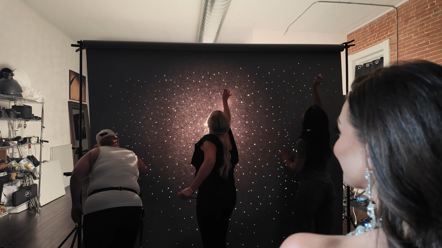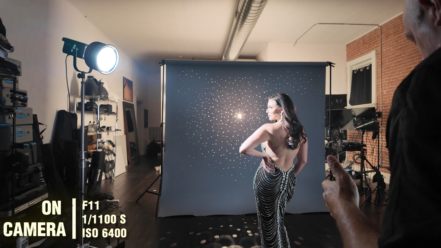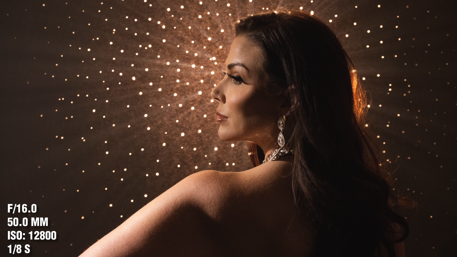 To create something unique, try punching small holes into the backdrop. When you shine light from behind, those holes turn into beams of light that cut through the scene. This adds instant visual interest and gives your portraits a stylized, high end look.