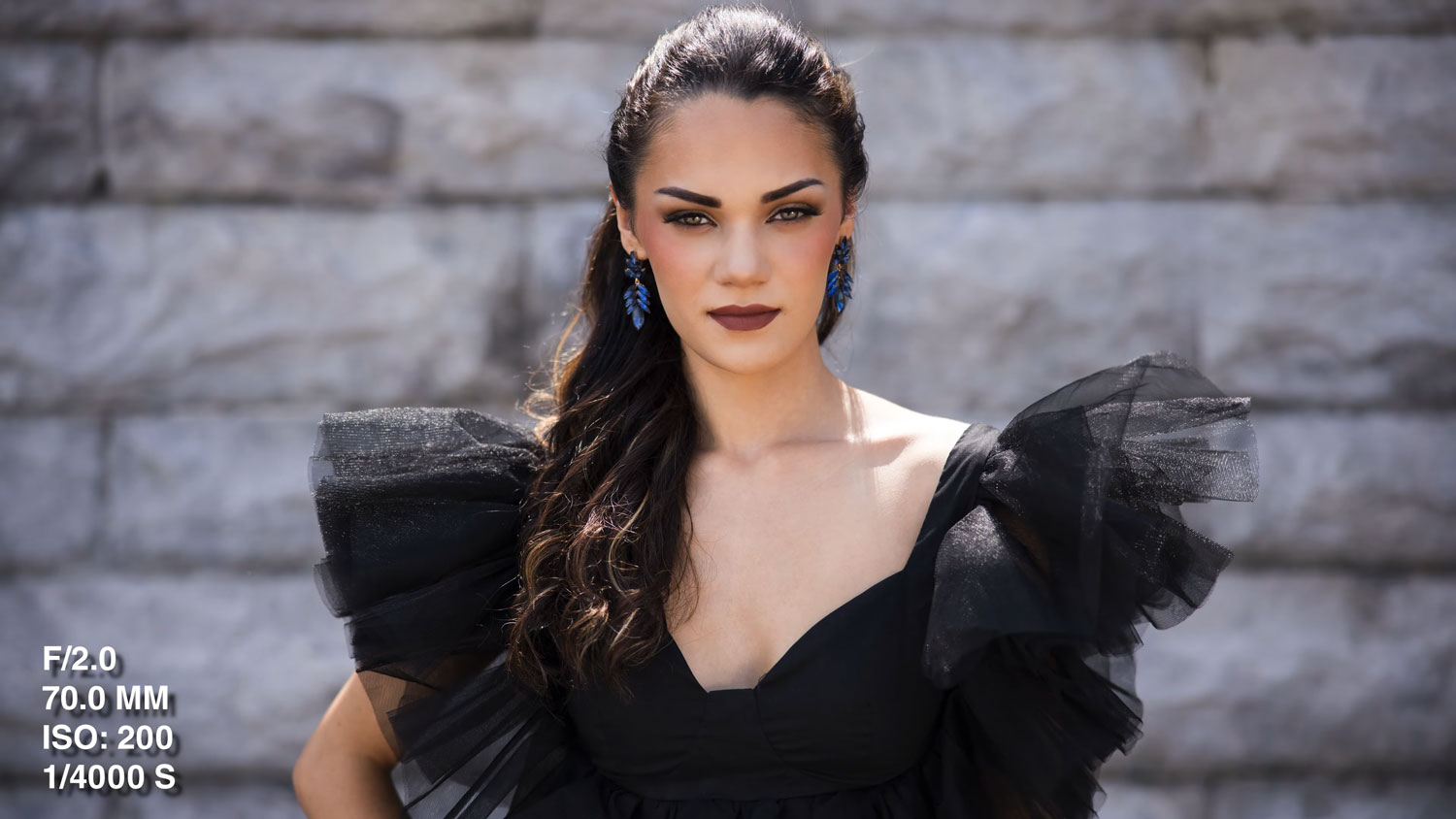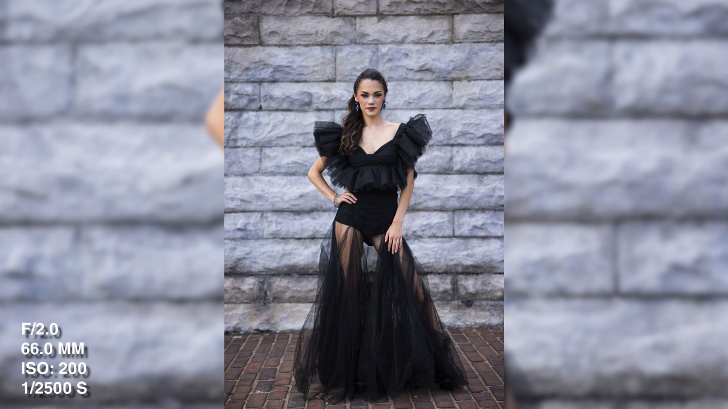 We shot wide open at f/2, using a 28–70mm lens. That shallow depth of field blurred the gritty background just enough to make our model pop while still keeping the urban texture visible.